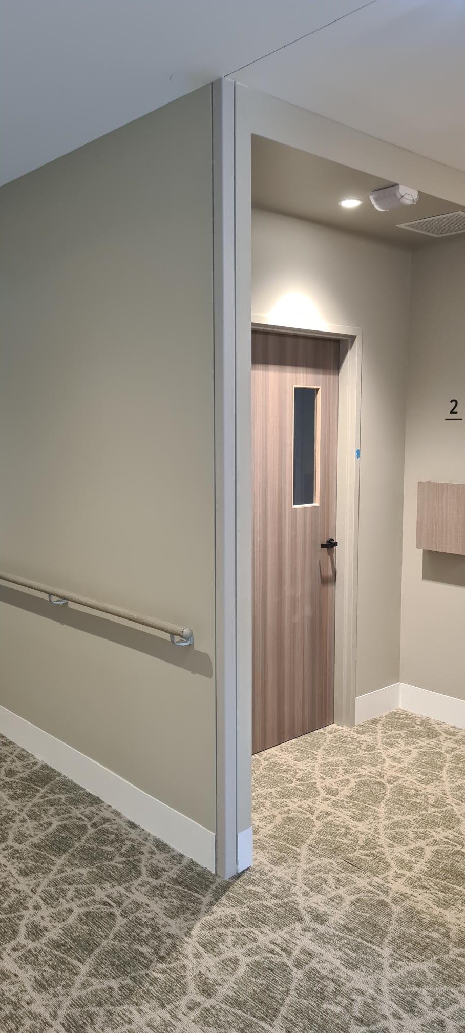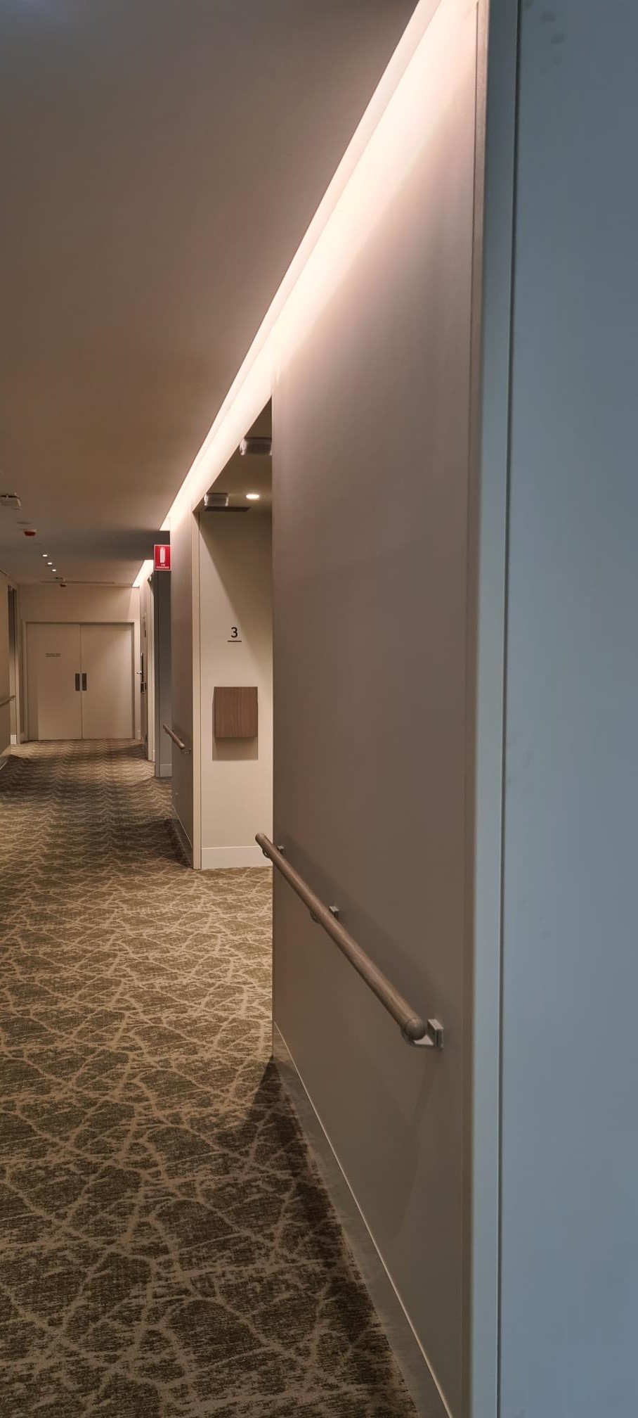 Acculine presented the 160F Flush Mounted corner guard option in a full height application to ensure that both the high-impact requirement and the minimalistic appearance were met. The colours selected were Taupe, Chino and Antique White, to blend in with the changing muted colour scheme throughout the different wings.